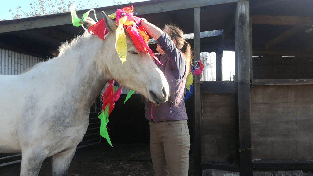However, this must come with a disclaimer. I’m a professional trainer and a behaviourist. I know how to introduce these things in a safe and non threatening way. I DO NOT advocate that you should go and try this with your horse, especially in the current circumstances. Done incorrectly, you can cause lasting psychological damage and could put yourself and others at risk. Only do this under supervision of an appropriately qualified professional, preferably one listed on the ABTC register of Clinical Animal Behaviourists as a horse specialist. Eventually we will have a horse trainers register too!
