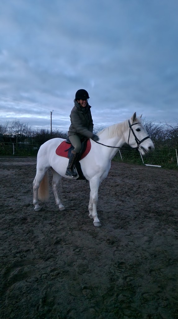 That evening, feeling inspired after my coaching session, I got back in the saddle after my 12 week break. It was so lovely to be on board, I got on my daughter’s new loan horse who is really sweet and took very very good care of me. It is going to take a while to get those muscles activated again though!