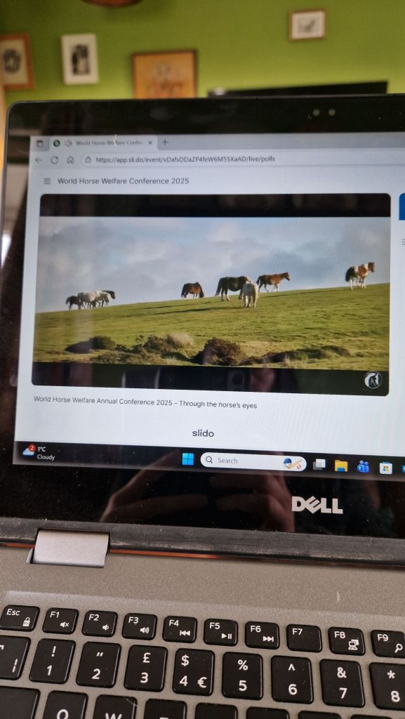 Today I am virtually attending the World Horse Welfare Conference 2025 #ThroughTheHorsesEyes and I’m delighted that the focus is on looking at how the horse actually feels about the world that they live in. In my day to day work I meet many horses who aren’t terribly happy. It is my job to interpret their behaviour and body language and explain to owners how the horse is feeling and what aspects of their day to day life are creating stress for them and what aspects relieve that stress. We can then look at management and training changes that help improve welfare, creating positive wellbeing and a Good Life for Horses.