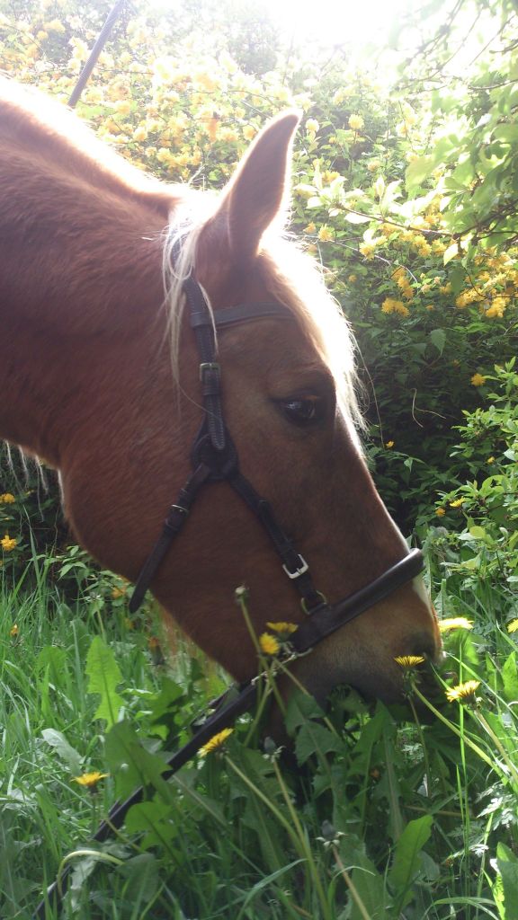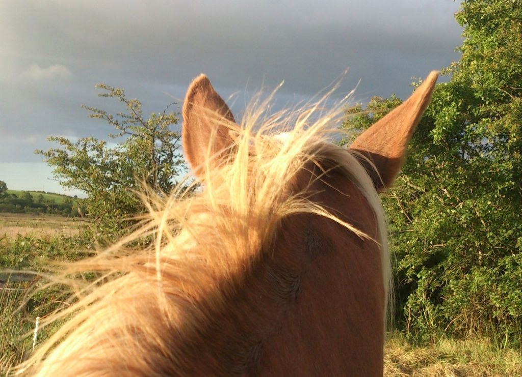 I was sitting on what was eventually 16 hands of connemara sport horse cross, with nearly 50% thoroughbred in there, who had been trained and handled positively from the start, very little fear of anything, super confident, expressive and aware that she had choice. I was working in the field with her mum and her friend, because at that point that was the only training space I had.